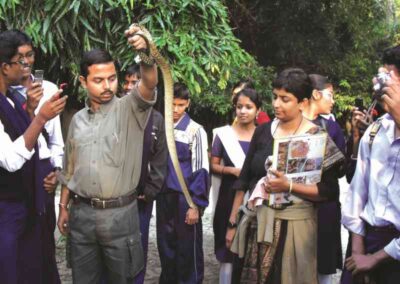 In 2009, Amrita Gupta designed a unique proposal for Kendriya Vidyalaya Sangathan to bring the students into the forest to provide them practical green education. KV authority approved this for their Kolkata region. Many schools like Fort William, Cossipore, Salt Lake, Command Hospital, Ballygaunge, etc. send their students with us initially in Bethuadahari Later on Sundarban. The students learned many more things that they never heard before. They came to know about wildlife rescue rehabilitation, Flora Fauna identification, bird watching, how to conserve forest & wildlife, the life of forest-villagers, etc. The initiative was highly appreciated by the Ministry of Environment & Forest, Govt. of India. West Bengal Forest department also extend their full cooperation. Under her able leadership, 20 lakh visitors were motivated in Alipur zoological garden during the ‘waste not – tease not’ campaign (a collaborative venture with Central Zoo Authority). She loves to